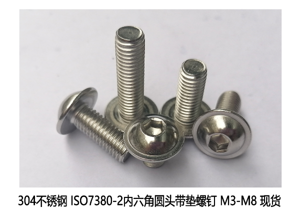 ISO7380.2帶墊圓頭內六角螺釘螺絲現貨規格明細如下: